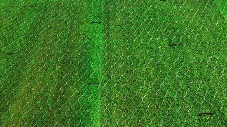 加筋麥克墊:組合式產(chǎn)品,土工材料與綠格網(wǎng)相結(jié)合而成,兼具土工材料及綠格網(wǎng)的優(yōu)點。土工材料為聚丙烯材質(zhì),綠格網(wǎng)鋼絲通常選用防腐性能好的鍍10%鋁鋅合金鋼絲。